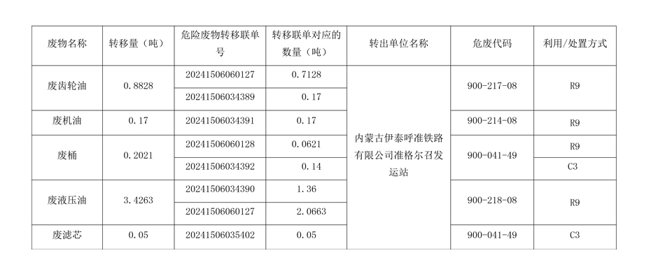 内蒙古伊泰呼准铁路有限公司准格尔召发运站 2024年度危险废物信息公开